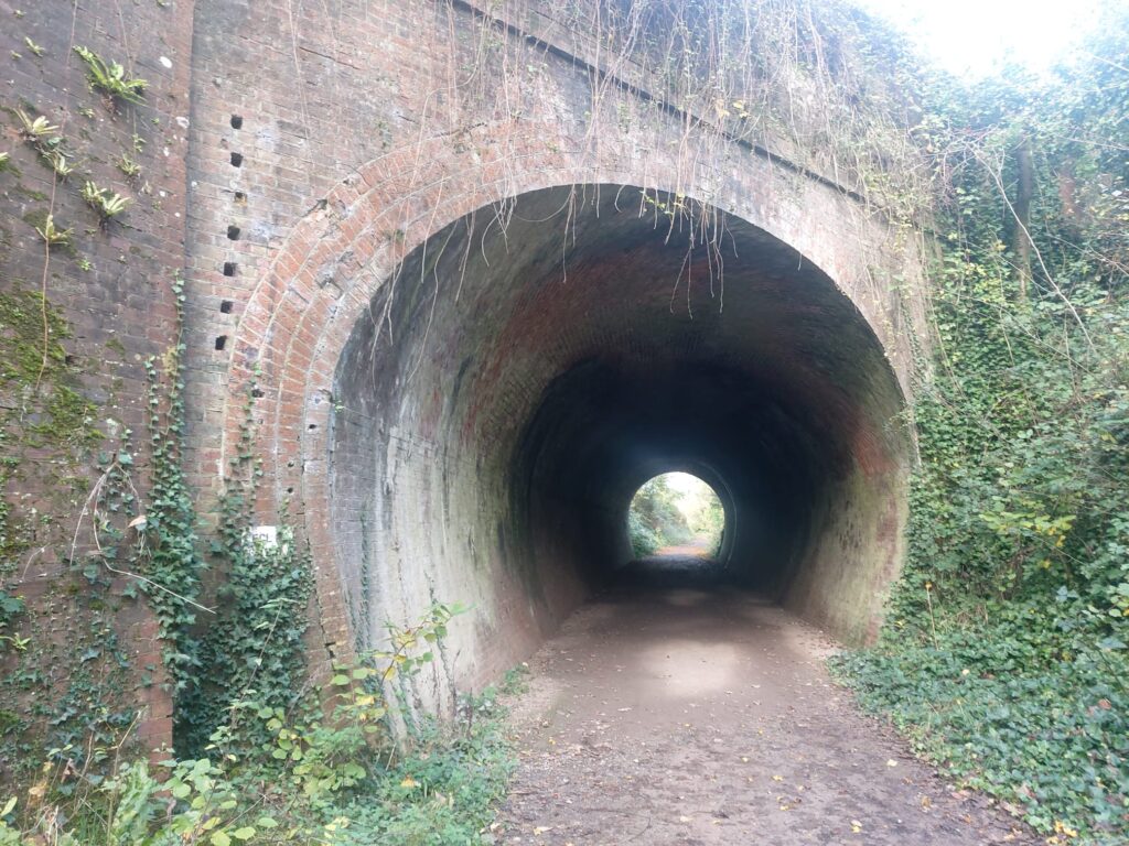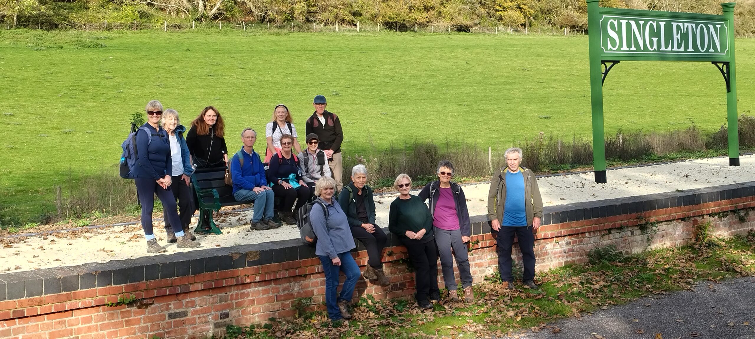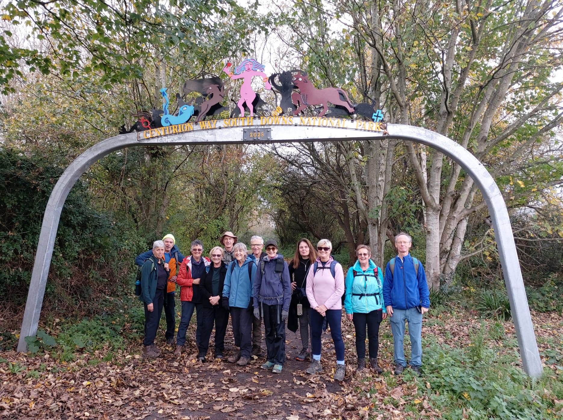 The Centurion Way is a flat path that follows the old, dismantled Chichester to Midhurst railway line, which closed in 1991. For many years the Centurion Way comprised 5.5 miles of path running north from Chichester to West Dean – but in August this year, following 3 years of extensive work, a further 1.3 miles was officially opened, extending the route to Cucumber Farm and including Singleton station. Petersfield Ramblers were keen to explore this new extension so – on a warm day in mid-November – 14 Ramblers gathered in Chichester Festival Theatre’s car park to begin their adventure. It was felt that it was only right to walk the whole trail, leading north to reach our goal after lunch.
