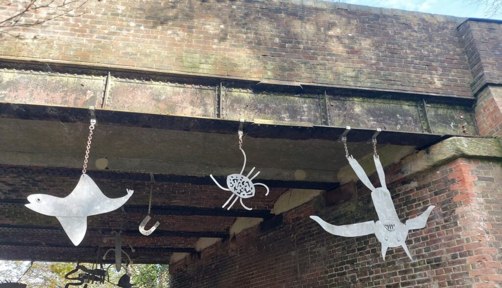 Another half a mile took us to our fourth brick bridge – decorated with animal cut-outs drawn by children from Lavant Primary School and reproduced in steel sheet by Richard Farrington.