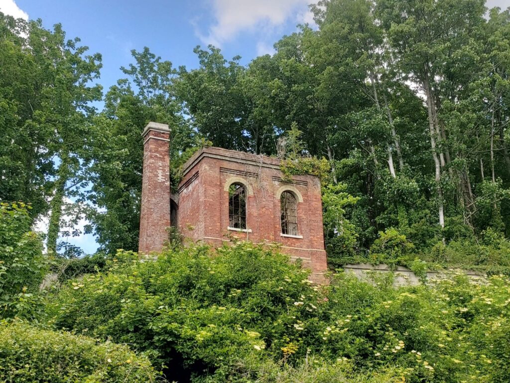Continuing north on the trail we passed the ruined water tower covered in ivy.