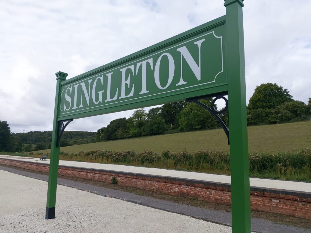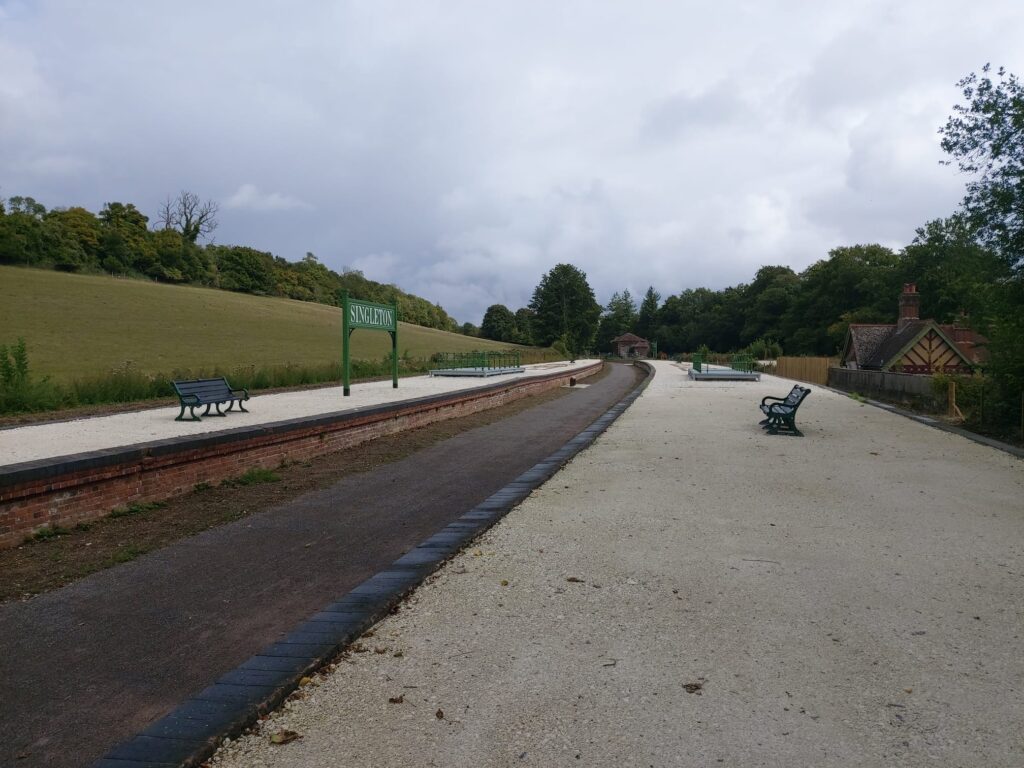 A little further along the trail opened out to reveal restored Singleton station with its vast four platforms, built to handle all the visitors to Goodwood Races. Information boards helpfully explained the station’s history. Beyond the station stands a dilapidated but picturesque goods shed – and one of a number of milk halts.